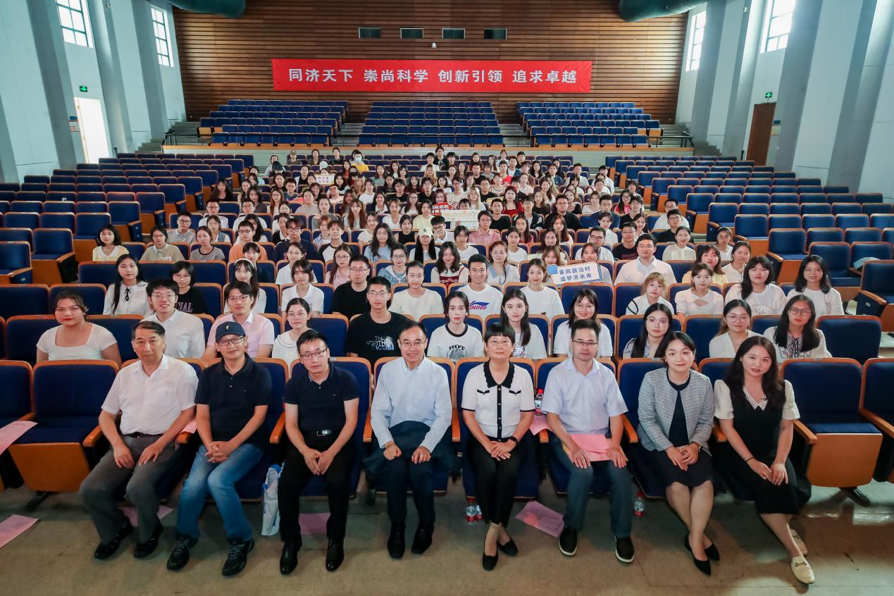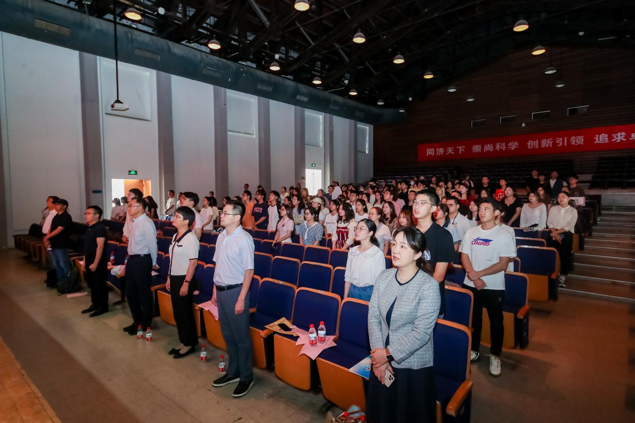 徐徐的歌声为本次开学典礼画上了休止符——在公司领导向员工代表赠送院徽后,全体师生合唱了校歌《同济之歌》,并留下珍贵合影。