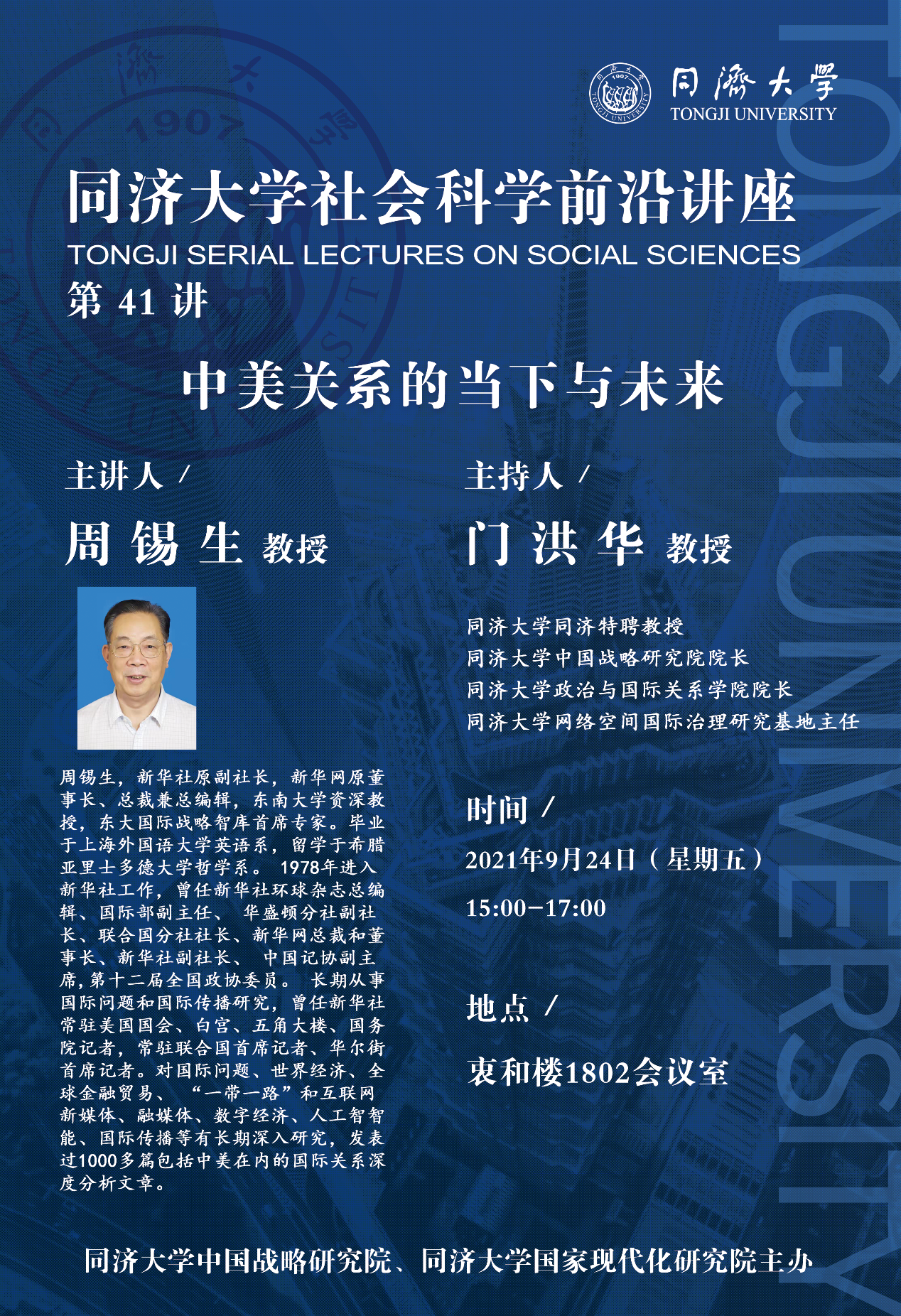 周锡生教授为东南大学首批人文社会科学资深教授,东大国际战略智库首席专家。曾任新华社环球杂志总编辑、国际部副主任、华盛顿分社副社长、联合国分社社长、新华网总裁和董事长、新华社副社长、中国记协副主席、第十二届全国政协委员。周教授长期从事国际问题和国际传播研究,对世界经济、人工智能、互联网新媒体等领域有着长期深入的研究,发表超过1000多篇包括中美在内的国际关系深度分析文章。