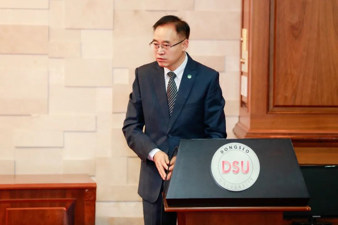 President Jang Je-guk welcomed guests from both China and South Korea to Dongseo University to participate in the 9th Shanghai-Busan Cooperation Forum in his speech. He pointed out that since the establishment of diplomatic relations between China and South Korea, the two countries have carried out fruitful cooperation in various fields. And the two sister cities of Busan and Shanghai have also carried out wide-ranging and multi-level exchanges and cooperation with fruitful results.