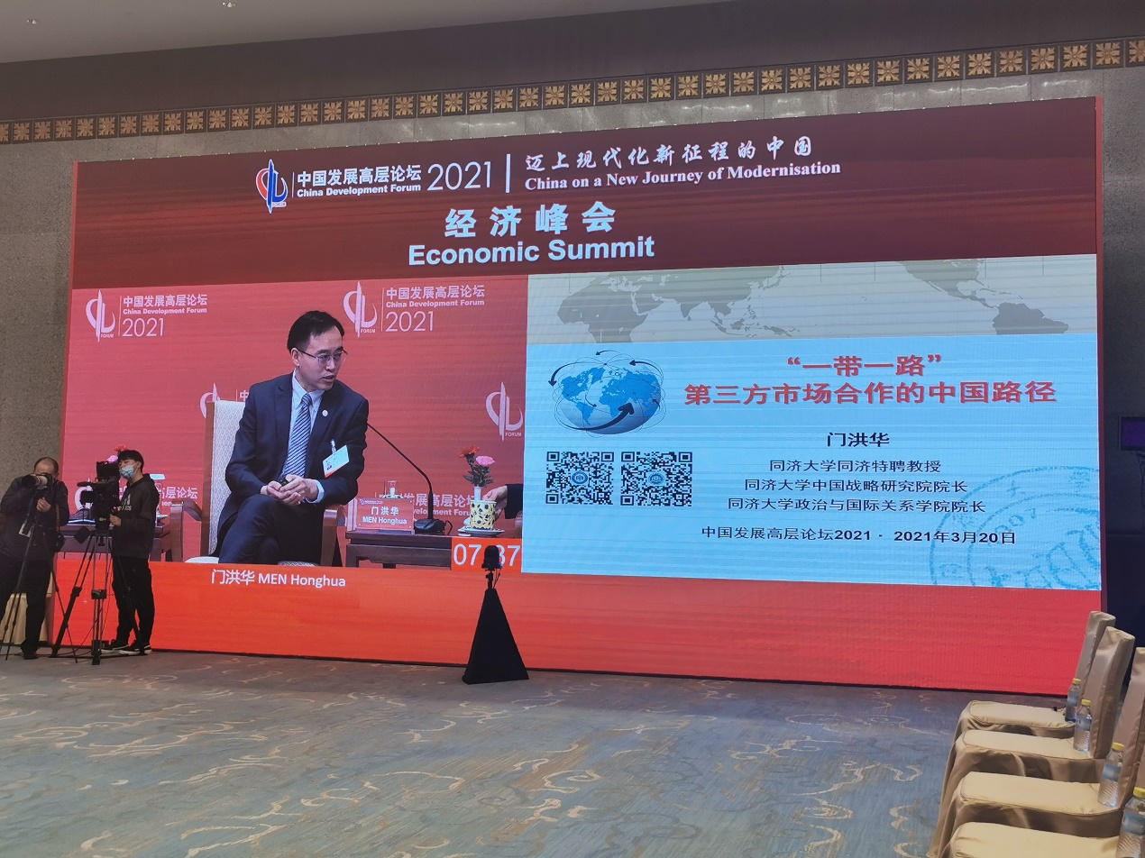 Professor Men Honghua, Distinguished Professor at Tongji, President of the Institute for China & World Studies, Dean of the School of Political Science & International Relations, Tongji University, and Director of Tongji Base for Research on International Governance of Cyberspace under the Cyberspace Administration of China (CAC) & the Ministry of Education (MOE), was invited to attend the forum and delivered a keynote speech at the special session themed “Third-Party Cooperation under the Belt and Road Initiative”.