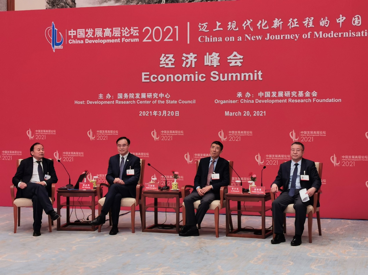 The China Development Forum (CDF) 2021, hosted by the Development Research Center of the State Council and organized by the China Development Research Foundation, was held simultaneously online and offline in the Diaoyutai State Guesthouse of Beijing, March 20-22, 2021. Themed “China on a New Journey of Modernization”, this forum brought together political, business and academic leaders from home and abroad for exchanges on special topics.