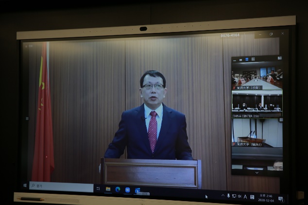 The opening ceremony was moderated by Shin Jung-seung, and addressed by DSU President Chang Je-kuk, Professor Fang Ping, and Guo Peng, Consul General of China in Busan successively.