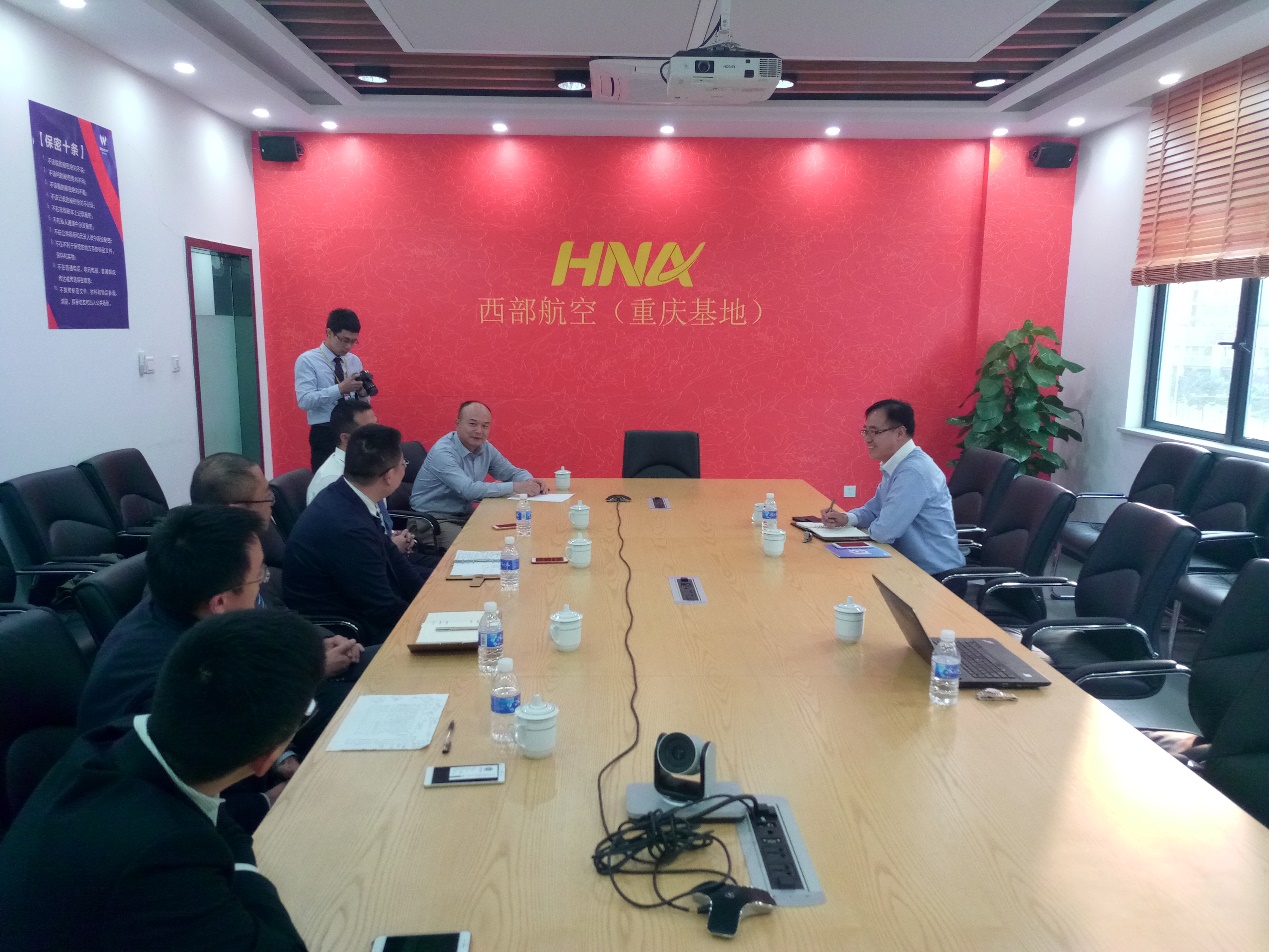That afternoon, Prof. Men’s delegation went to visit the headquarters of West Air, as part of the survey led by the professor on the philosophy subject of HNA’s spiritual culture. At the meeting, West Air Chairman Pu Ming first welcomed the delegation, and then briefly introduced HNA’s spiritual culture, West Air’s development history, and his understanding of low-cost airlines. The directors from more than 10 departments of West Air gave presentations about West Air’s achievements and innovations in promoting the low-cost concept, advocating low-carbon travel, and implementing the “Internet Plus” strategy, based on their own work experience and the department responsibilities. After listening to the presentations, Prof. Men spoke highly of HNA’s spiritual culture, and appreciated West Air’s high-efficiency and low-cost operation model. He believed that guided by the HNA spirit and oriented by the market, West Air would remain true to its original aspiration of high standards, excellent services and all-round development in consistent with the technical characteristics of the information age.