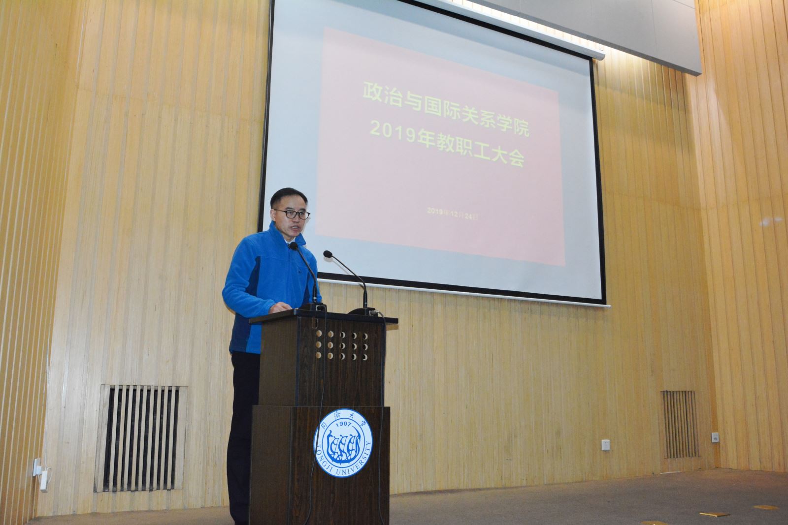 The Party and executive leaders of the School made reports on the work priorities for 2020. In 2020, the School will continue to take the socialist approach to education, keep in mind the mission of cultivating talents with morality, firmly seize the new period of strategic opportunities for the School and its discipline development, and focus on connotative development, thus embarking on a new journey for first-class school and first-class disciplines. Efforts should be made to: (i) fully strengthen the Party’s leadership, make solid progress in the Party building, and uphold the socialist approach to education; (ii) leverage the fifth round of discipline evaluation to adjust and improve the arrangement of Political Science and deepen the connotative development of disciplines; (iii) strengthen the management of undergraduates and postgraduates, and build a new system for cultivating high-level talents; (iv) thoroughly implement the “three all-round education” requirements, and strengthen ideological and political education, to help students grow into talents; (v) focus on research on governance & strategy, and improve decision-making and consulting capabilities through “organized research”, to push the School’s research work to a new height; (vi) coordinate the overall domestic and international situations, strengthen the management of foreign affairs, and deepen the international cooperation, to break new ground in the internationalization strategy; (vii) build a high-level faculty team by combining social recruitment with in-house training and deepening the reform of the incentive mechanism.