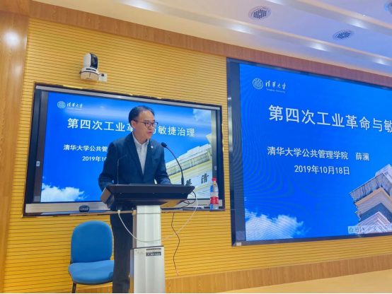 On October 18, 2019, the Tongji Serial Lectures on Social Sciences No.18, hosted by the Institute for China & World Studies and the School of Political Science & International Relations (SPSIR) of Tongji University, was successfully held in Conference Hall 518, Huiwen Building, Tongji University. Dr. Xue Lan, a senior professor of liberal arts (1st batch) at Tsinghua University, a Changjiang Scholar of Public Administration in China, and Dean of Schwarzman College at Tsinghua University, was specially invited to give a keynote speech on the topic of "The Fourth Industrial Revolution and Agile Governance" for teachers and students of Tongji.