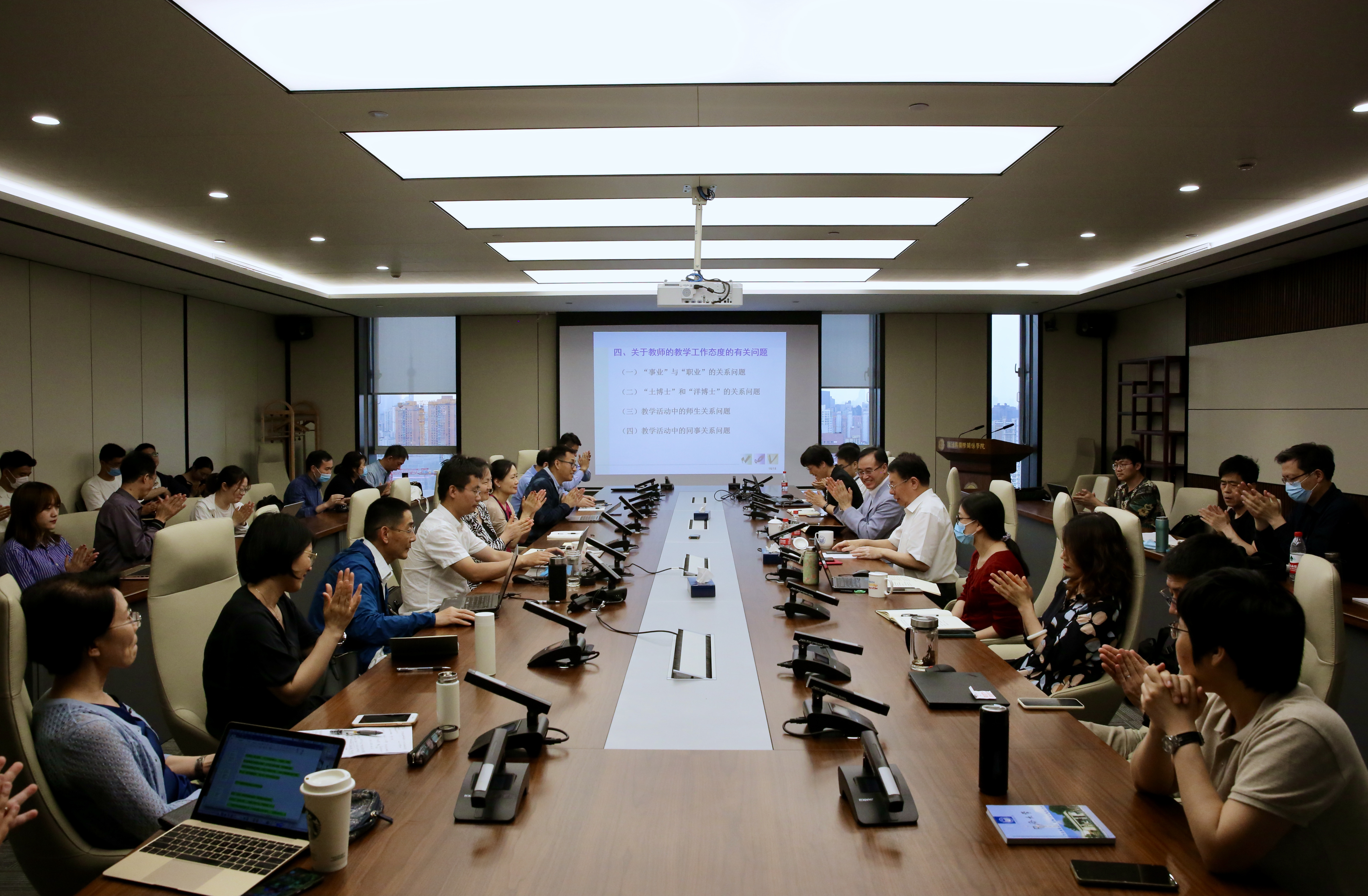 Afterwards, Prof. Zhu provided systemic guidance and instructions on undergraduate and postgraduate teaching as well as young teachers and scholars’ work in several aspects including "necessity and feasibility of improving the teaching level", "technical issues on improving the quality of liberal education", "cognitive issues on improving the quality of liberal education", and "issues concerning teachers’ work attitude".