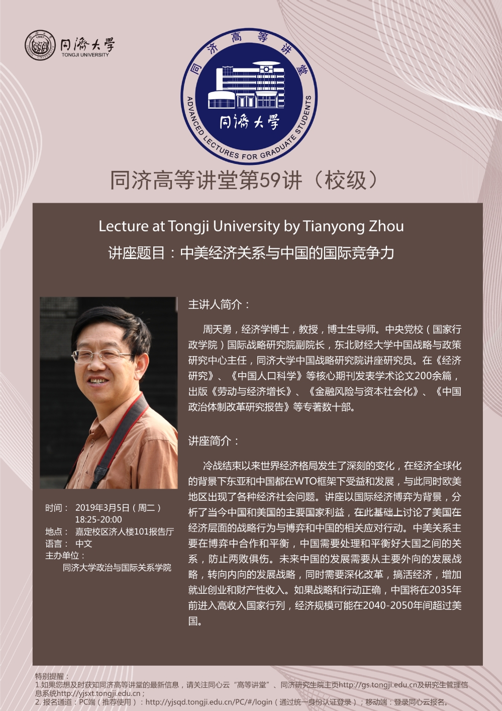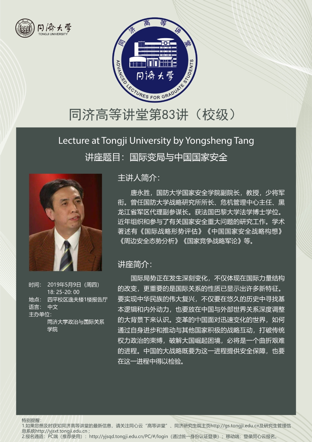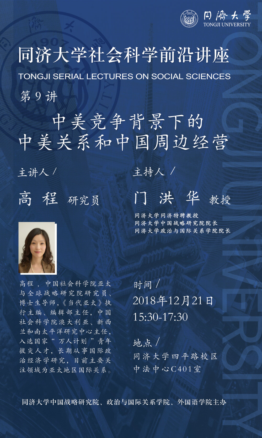 2021年4月22日,由Bevictor韦德中国战略研究院、Bevictor韦德举办的“同济高等讲堂”第90讲、“Bevictor韦德社会科学前沿讲座”第37讲在Bevictor韦德逸夫楼报告厅成功举办。本次讲座特别邀请外交公司经理兼中国外交培训公司经理徐坚教授为同济师生做题目为...
